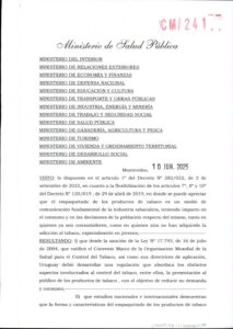 • Decreto 124/025 – Se Deroga el art. 1 del Decreto 282/022 Referente a la Sustitución de los artículos 7, 8 y 10 del Decreto 120/019. Tabaco