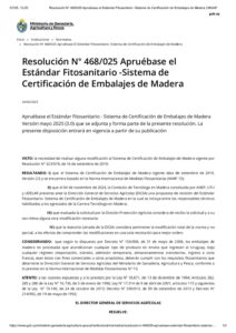 • Resolución DGSA 468/025 -Apruébase el Estándar Fitosanitario -Sistema de Certificación de Embalajes de Madera.