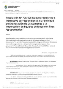 • Resolución DGRN 708/025 – Nuevos Requisitos e Instructivo Correspondiente a la “Solicitud de Exoneración de Gravámenes a la Importación de Equipos de Riego con Fines Agropecuarios”.